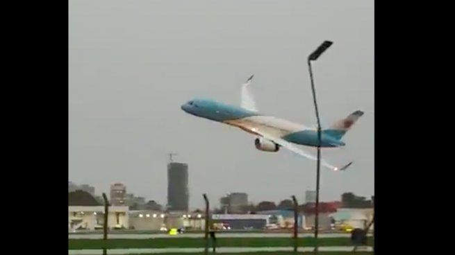 En las imágenes que circularon muestran al nuevo avión presidencial, ploteado de celeste y blanco, inclinarse pronunciadamente sobre su lado izquierdo.