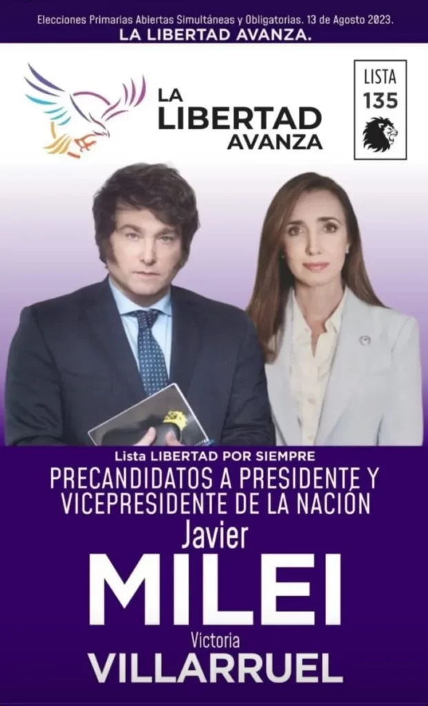 En este contexto y con las candidaturas ya definidas, se conoció la hoja principal de la boleta de La Libertad Avanza, donde se puede ver a la fórmula presidencial integrada por Javier Milei y Victoria Villarruel, pertenecientes a la lista 135. La fórmula se presenta bajo el nombre «LIBERTAD POR SIEMPRE».