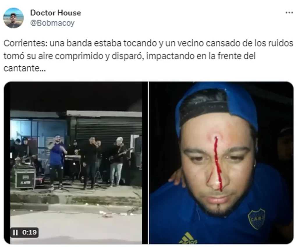 La víctima es un cantante de cumbia que se encontraba tocando en la vereda con su banda. El disparo lo realizó con un arma de aire comprimido.