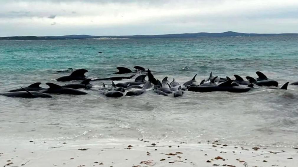 La manada de ballenas piloto -también conocidas como ‘calderones’- fue detectada el martes en la playa Cheynes, a unos 400 kilómetros al sureste de Perth.