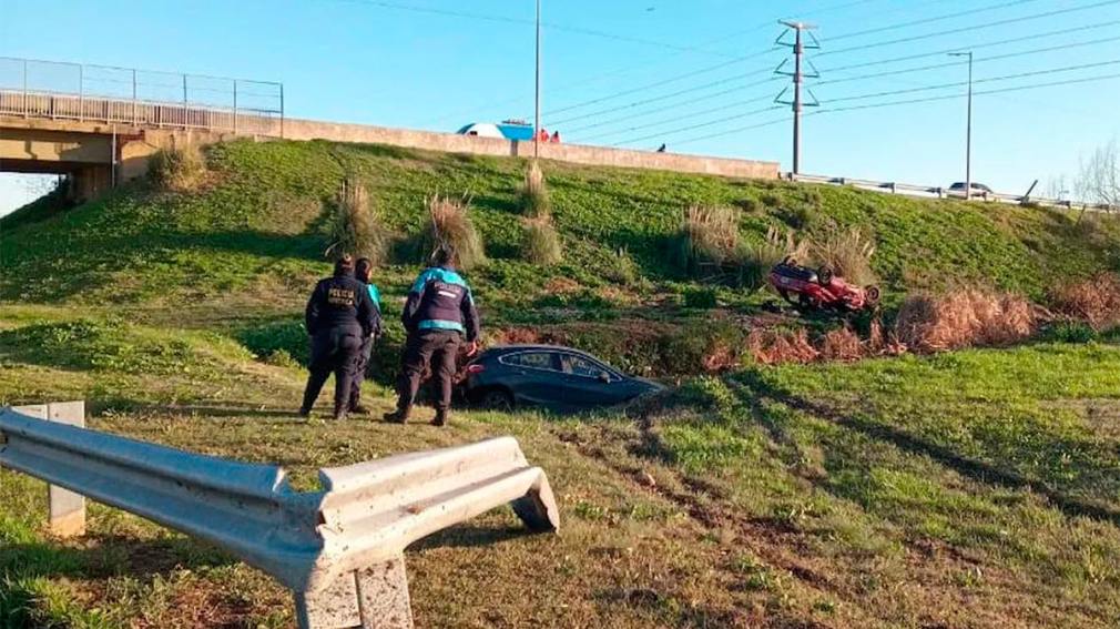 Debido a la alta velocidad en la que circulaban uno de ellos terminó incrustado dentro una zanja y el otro volcado sobre la banquina.
