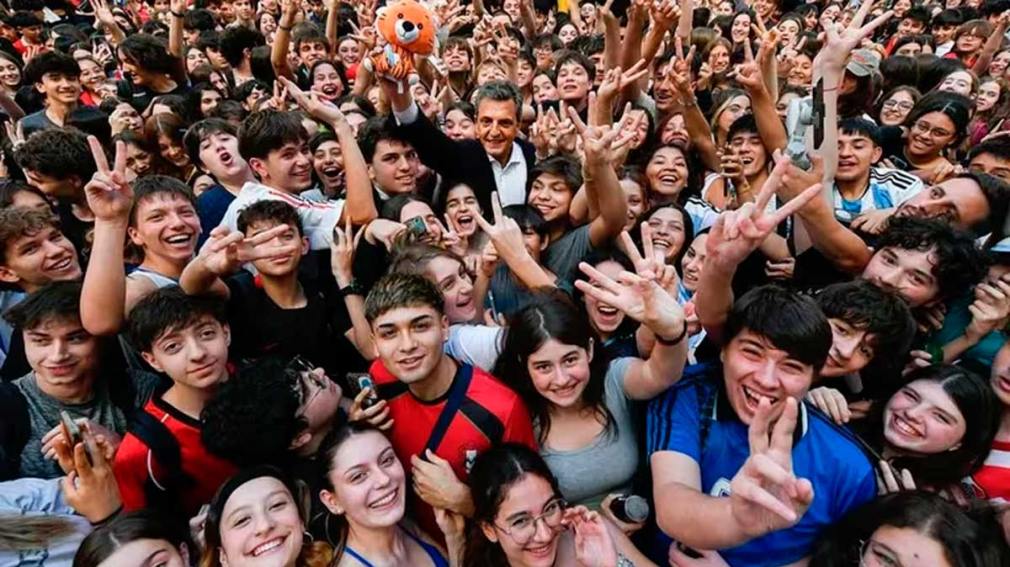 Massa estaba relajado, en un ambiente extremadamente distinto al que tuvo en su disertación en Consejo de Inversiones para el Comercio y la Producción (Cicyp), minutos antes de zambullirse en una marea de chicos que le pidieron ganar la elección del domingo y defender la educación pública como un valor fundamental de su eventual gestión. El ministro se reía frente a la ocurrencia de algunos alumnos que lo miraban con atención. Fue un cierre atípico, sin dirigencia política, sin gremios ni banderas.