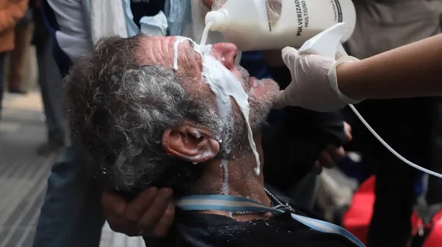 Fuerzas de seguridad tiraron gas pimienta y avanzaron sobre los manifestantes para no dejarlos llegar a la plaza del Congreso, donde se concentraron sindicatos, organizaciones sociales, agrupaciones políticas y autoconvocados para oponerse a los proyectos del Gobierno. Cuatro legisladores debieron ser asistidos por quemaduras por gas lacrimógeno.