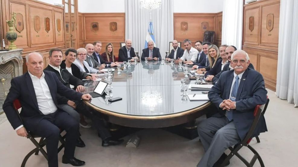El encuentro se lleva a cabo mientras frente al Congreso, y respetando el protocolo antipiquetes que penaliza los cortes de tránsito, todos los gremios aeronáuticos se manifiestan en rechazo de la ofensiva de la Casa Rosada.