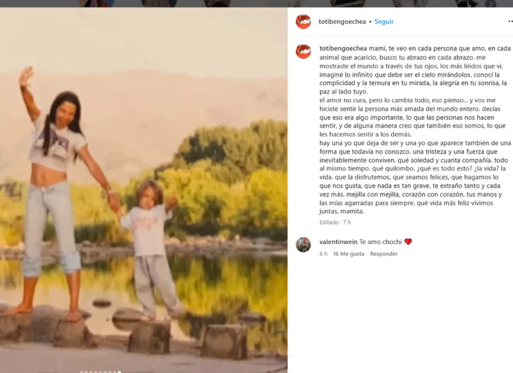 Antonia Bengoechea, la hija de Alejandra Darín, subió a su cuenta de Instagram un sentido posteo para despedir a su madre.