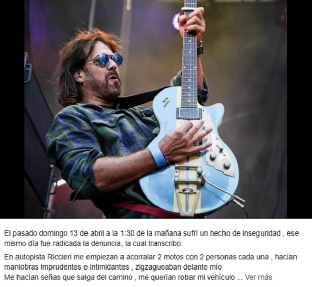 «El pasado domingo 13 de abril, a la 1.30 de la mañana, sufrí un hecho de inseguridad. Ese mismo día fue radicada la denuncia. En autopista Riccheri me empiezan a acorralar dos motos con dos personas cada una, hacían maniobras imprudentes e intimidantes, zigzagueaban delante mío», expresó el cantante en un descargo que publicó en redes sociales.