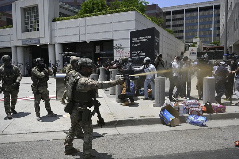 Uno de los primeros disturbios tras el arribo de la Guardia Nacional a Los Ángeles se produjo en los alrededores de un edificio federal, donde se encontraban protestantes, a los que lanzaron gas lacrimógeno. También se registraron vehículos incendiados, granadas arrojadas y rutas bloqueadas.