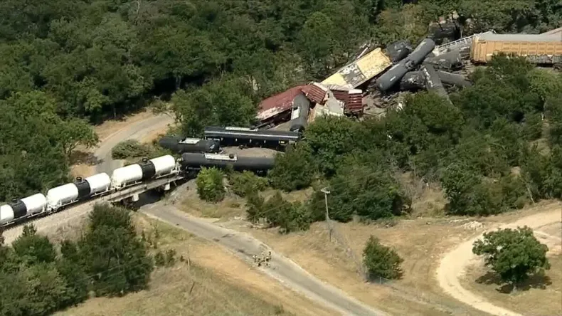 Descarriló un tren que llevaba sustancias peligrosas en Texas: hubo incendios de pastizales